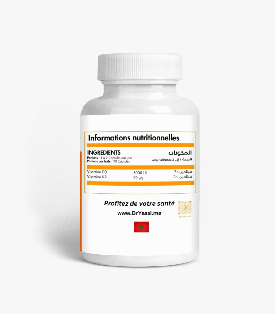 Ce duo synergique est essentiel. La D3 soutient l'immunité et l'absorption du calcium, tandis que la K2 assure la bonne direction du calcium pour la santé osseuse et cardiovasculaire.